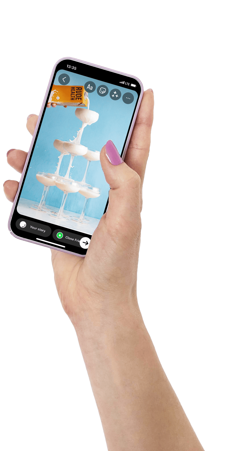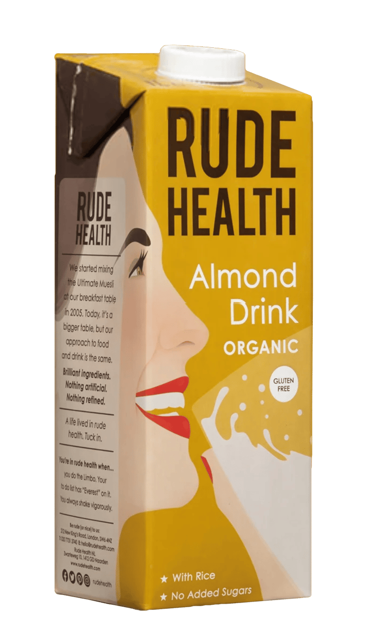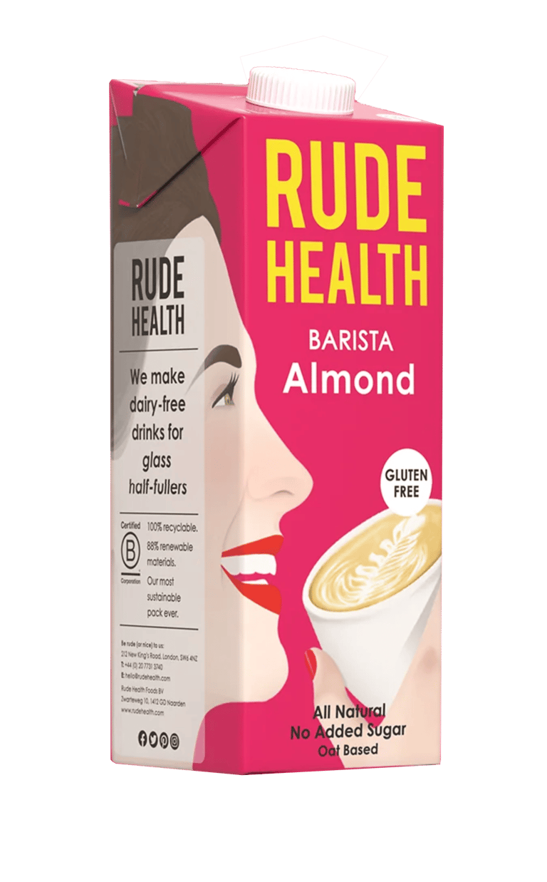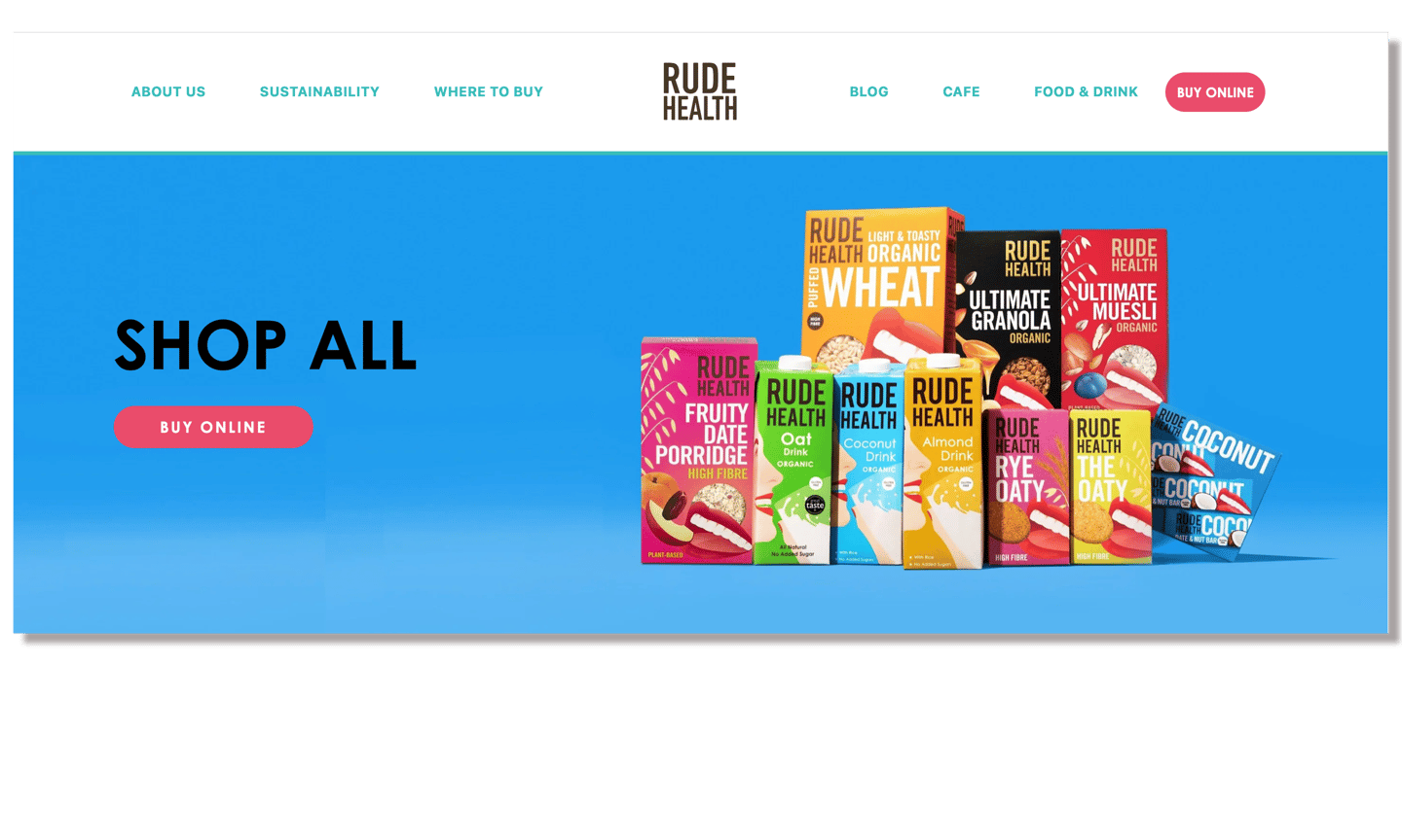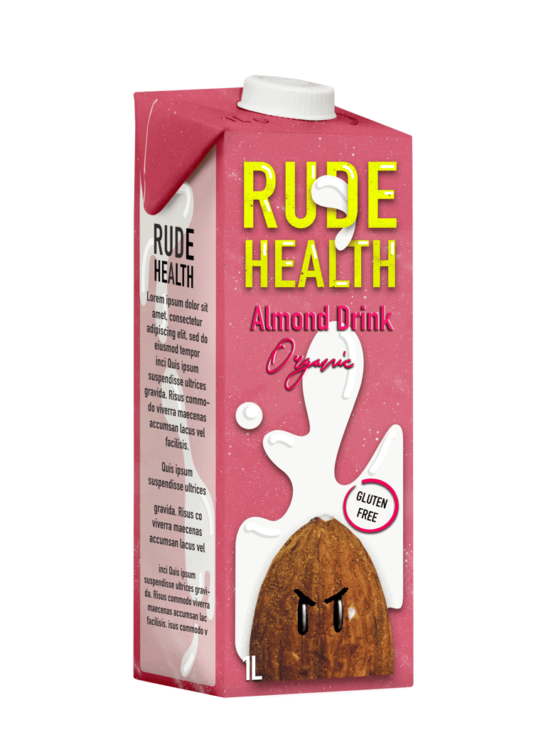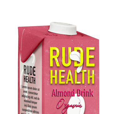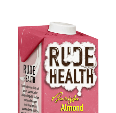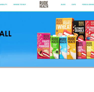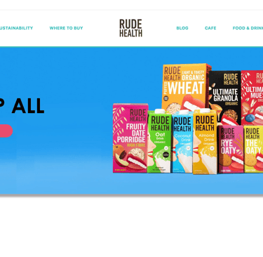 The camera pans up and reveals the rude health logo on a bright blue sky.